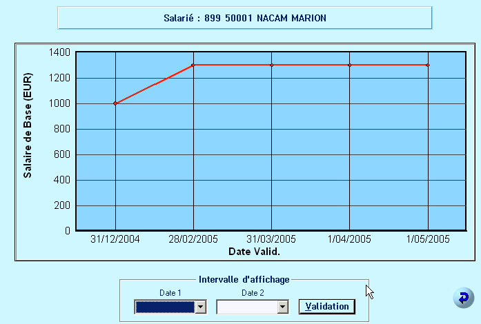 Vous obtenez alors le graphe d'évolution des salaires, avec les salaires en Ordonnée, et les dates en abscisse.