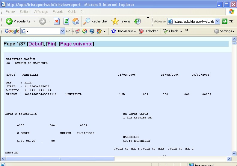 L'affichage d'une édition avec le bouton grille permet d'obtenir dans une fenêtre Internet explorer, la présentation graphique de l'édition telle que l'exemple suivant :